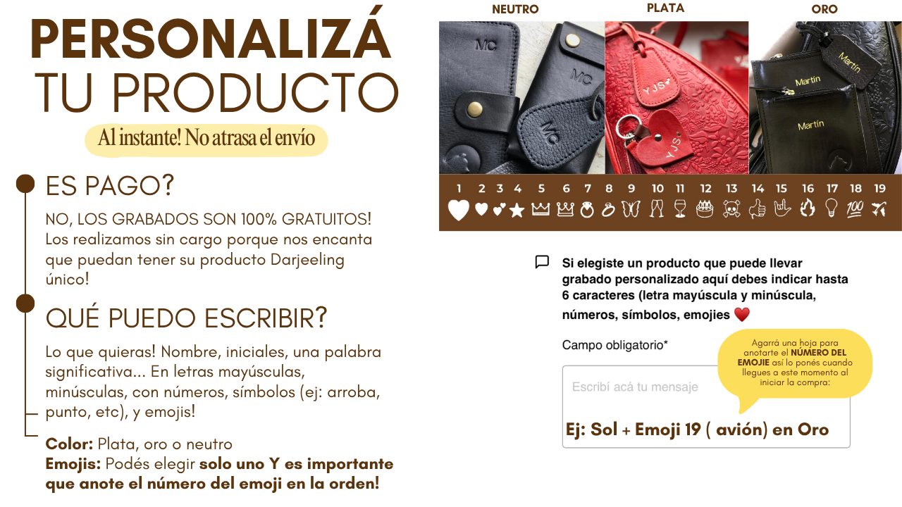 El grabado de iniciales en los productos es sin costo adicional.